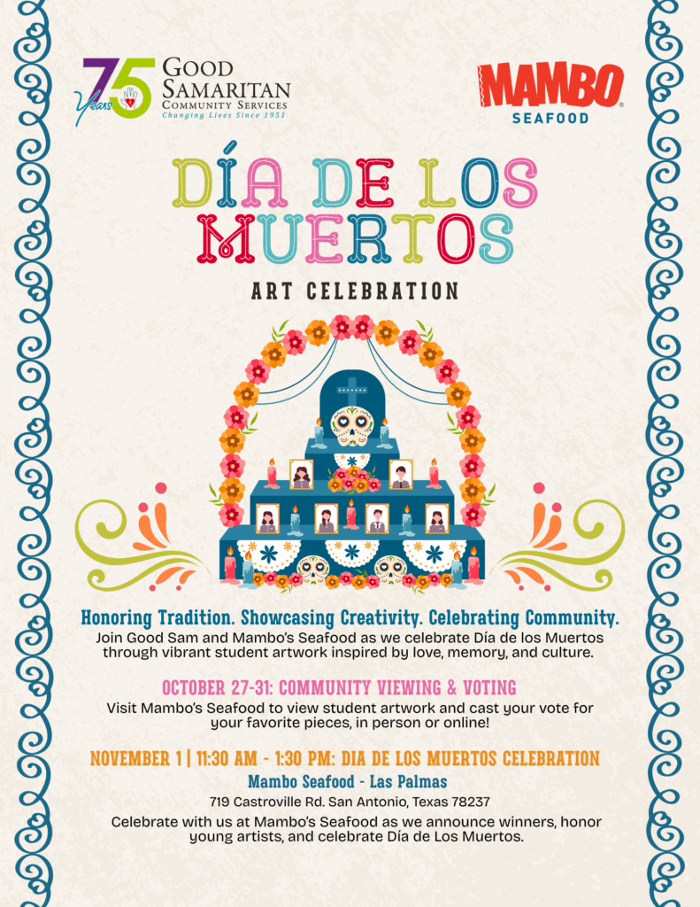 Mambo’s Seafood will be hosting the art display for its patrons throughout the week of October 27th – 31st. The winners will be announced on November 1st at 11:30 AM, at 719 Castroville Rd. San Antonio, TX 78237.